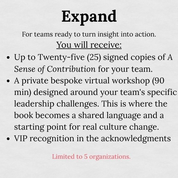 A Sense of Contribution is a nonfiction book that speaks to high-achieving leaders, healthcare professionals, founders, coaches, and thoughtful humans in seasons of growth or transition — especially those who are questioning old definitions of success, self-worth, and leadership for the first time.