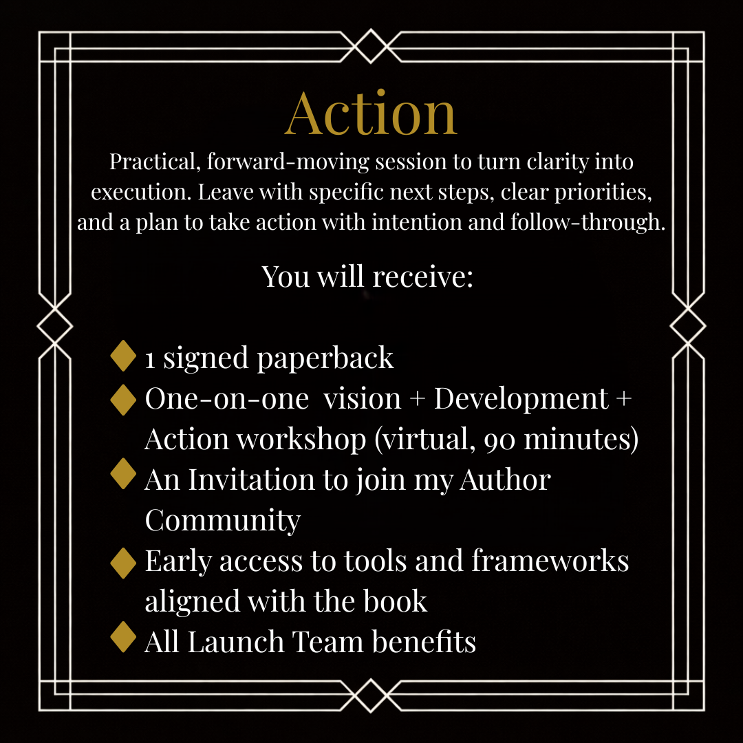 Action: Practical, forward-moving session to turn clarity into execution. Leave with specific next steps, clear priorities, and a plan to take action with intention and follow-through.