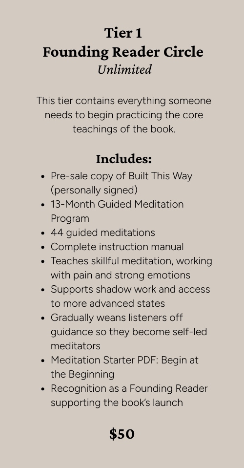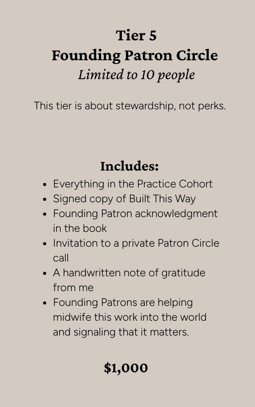 If your answer is YES, choose the tier that fits you, commit to the practice, and help bring Built This Way into the world.