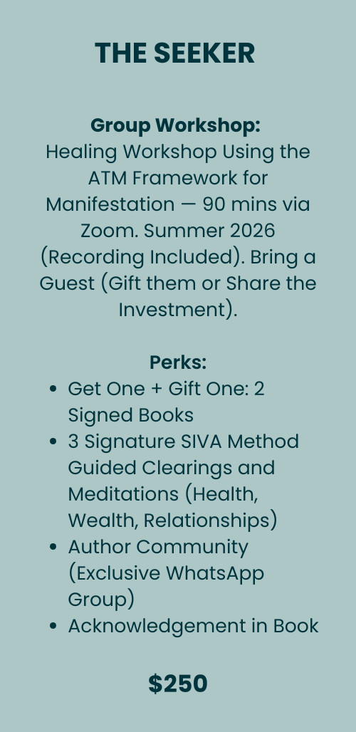 Group Workshop: Healing Workshop Using the ATM Framework for Manifestation — 90 mins via Zoom. Summer 2026 (Recording Included). Bring a Guest.