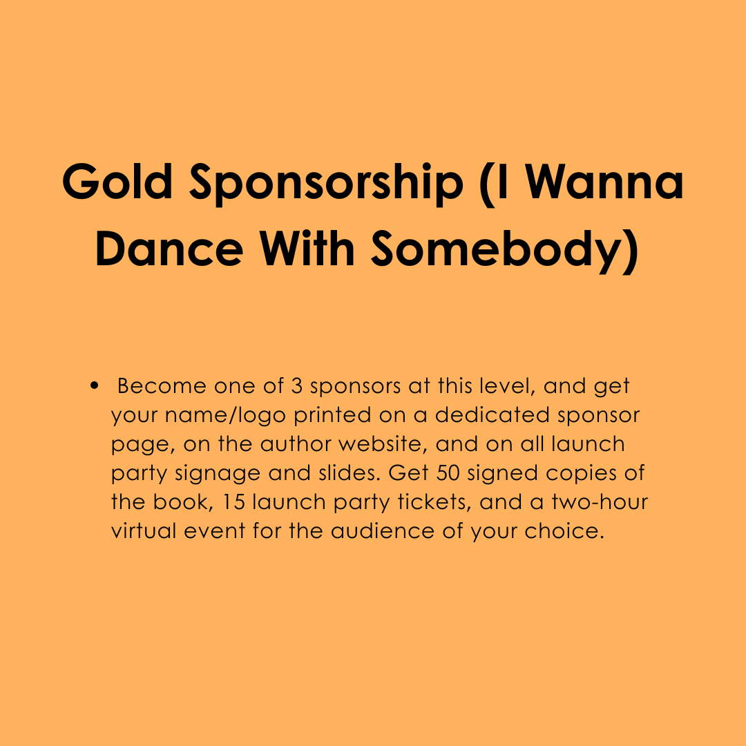 - The opportunity to have your name featured in the Acknowledgments section of my book (“with Special Thanks to”).