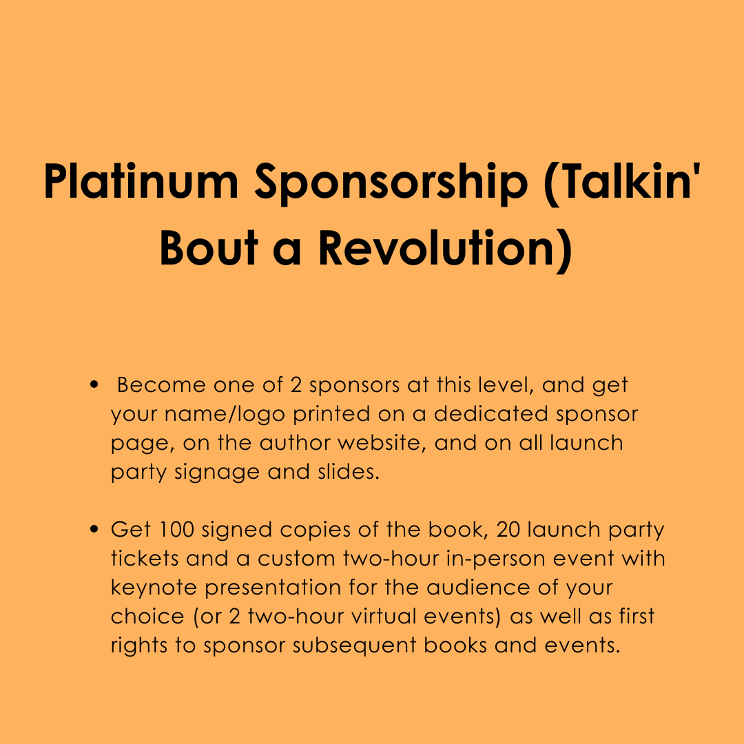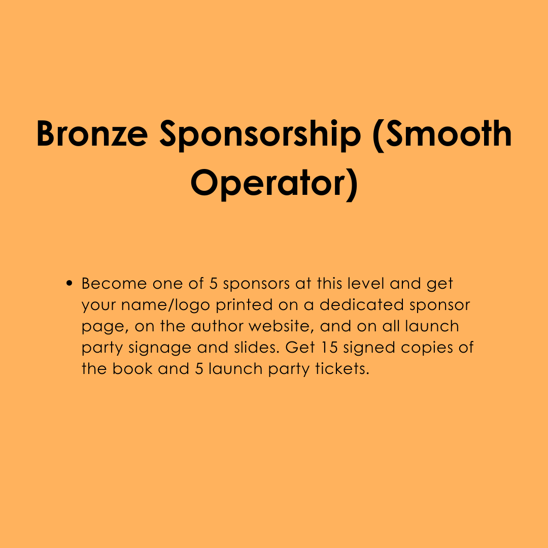 - E-book, paperback, hardcover, audiobook if we pre-sell $15K