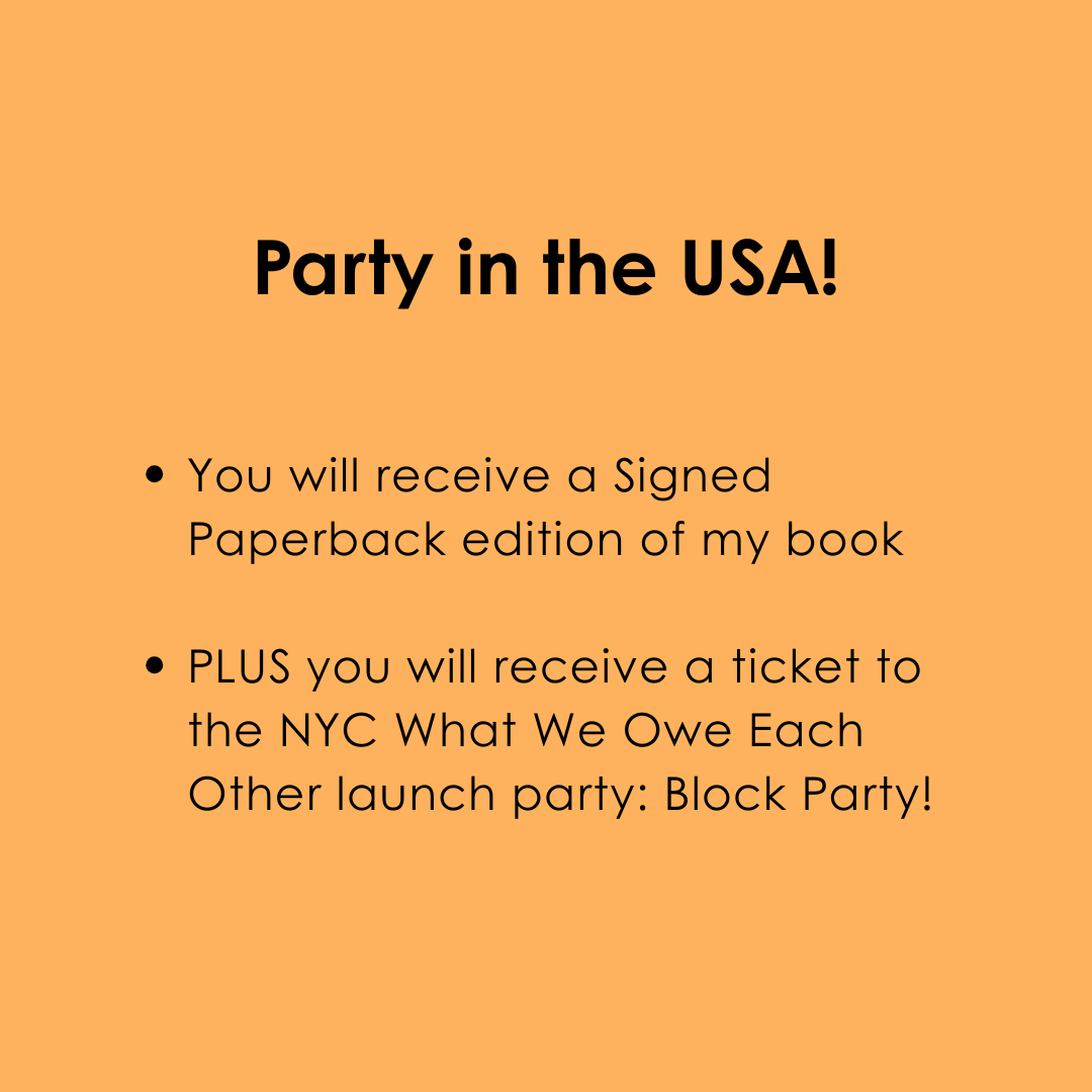 Please share my presale campaign on Facebook, X, and LinkedIn with your friends, family, and network. Please use #WhatWeOweEachOther and tag me so we can help amplify your efforts.