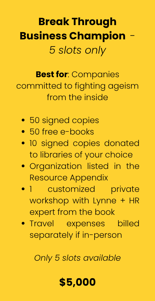 If you’re an employer or organization: the “Break Through Business” tiers include private workshops with Lynne and an HR expert from the book — designed to create real, lasting change inside your organization. Only a handful of slots are available.